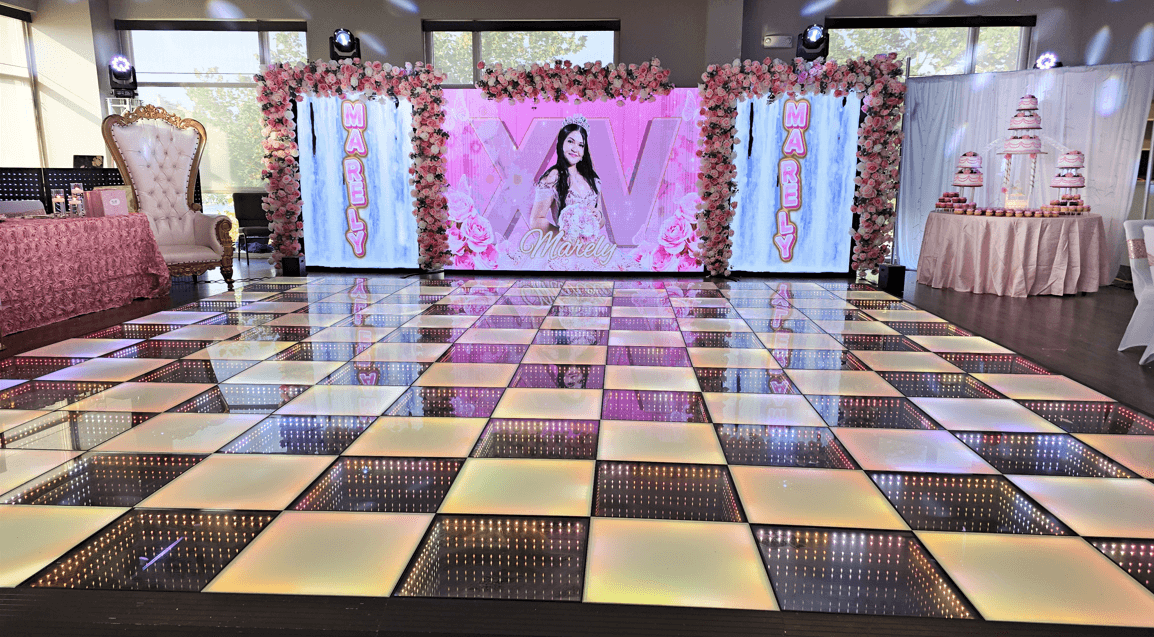 Our LED dance floors not only illuminate the space, they add elegance, glamour, and that touch of luxury that will make your guests say “wow” upon entering.